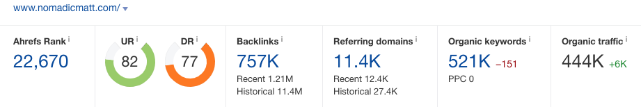 Nomadic Matt is an inspiration to many. One of the best known travel bloggers to many he lives the perfect life that blends work and passion. The nice thing when you get anywhere near the size of Matt’s blog is that you have a super-strong foundation to build off of. Your new content ranks right away because you are the authority in Google’s eyes.