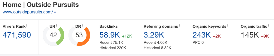 No mystery what Outside Pursuits is about — everything from camping to kayaks. A good example of a broad brand-able domain name that also is very niche relevant.