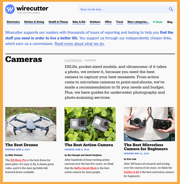 Careful Niche selection – This is the most important step. You can’t purchase ads to get traffic to your site with the commission structure of affiliate marketing at Amazon, eBay, Walmart etc. You need Google organic search to get traffic. You must find the perfect size niche. If you select too big a niche and you are competing with national companies with teams of writers, testers, SEO experts, and marketers. Sites like thewirecutter.com (A New York Times Company) generate millions in Amazon commissions but you will never rank a new site in Google search for these types of broad niches.